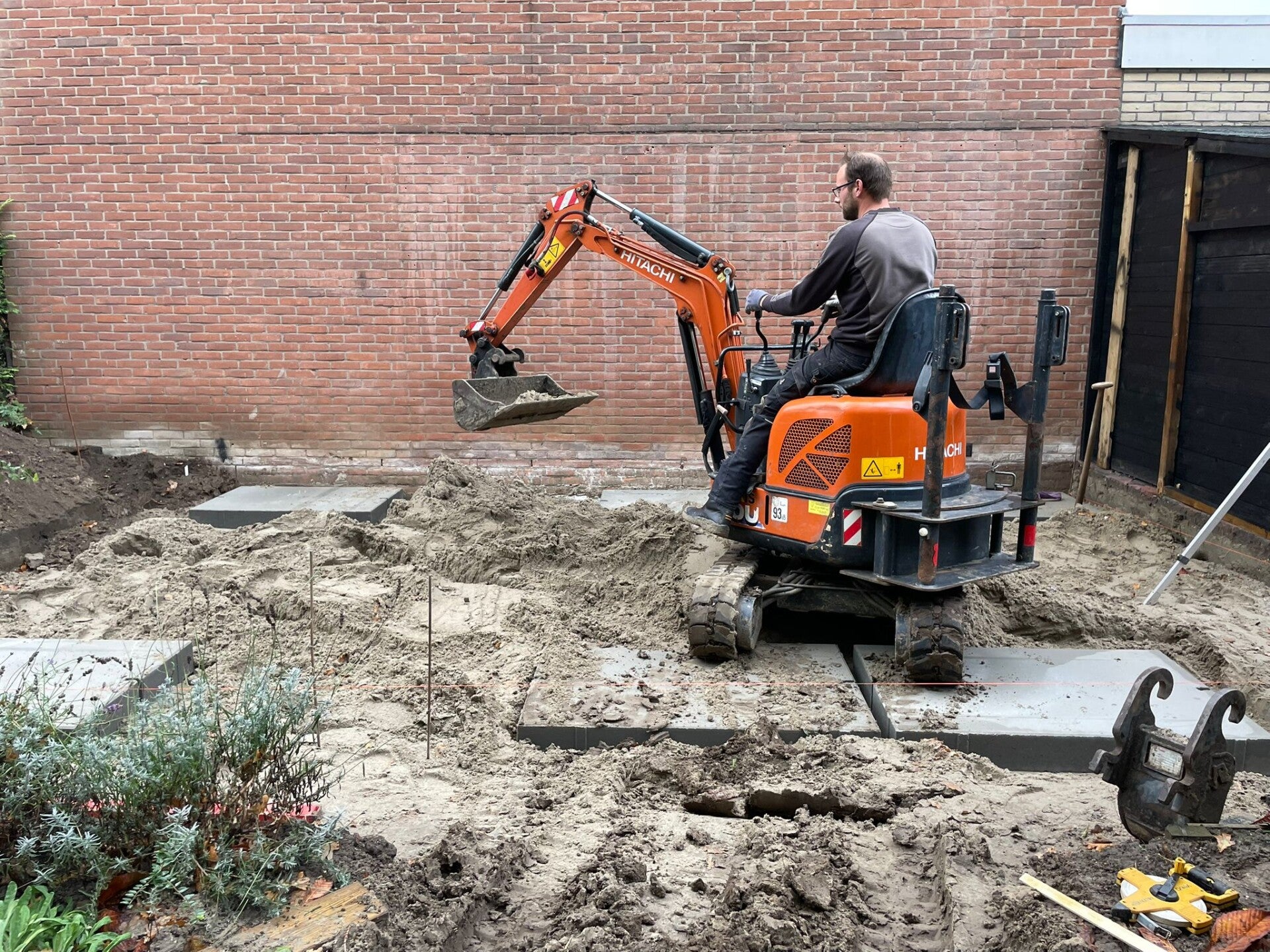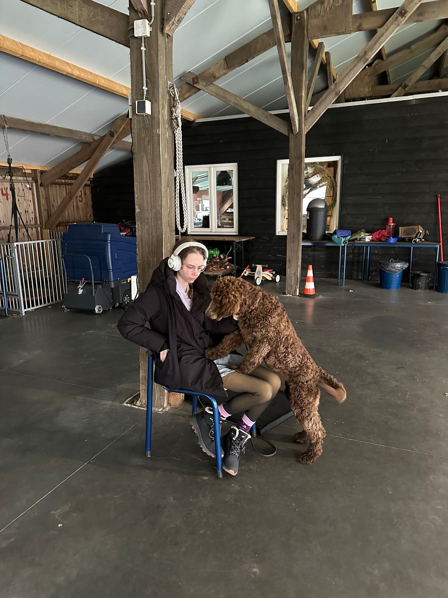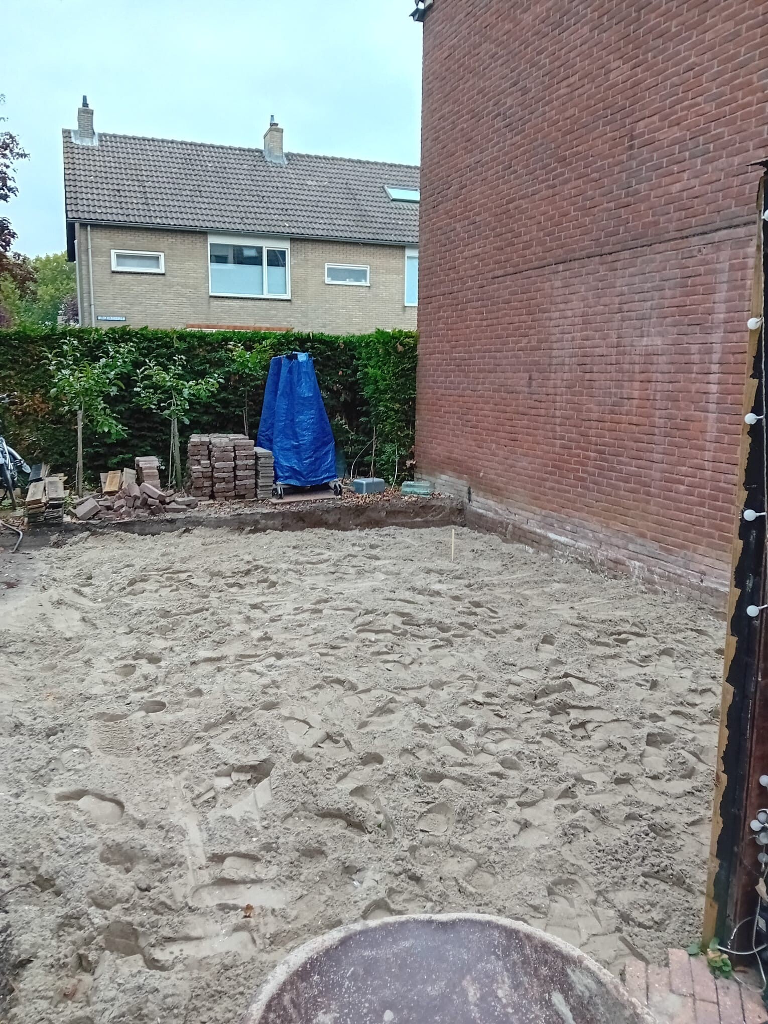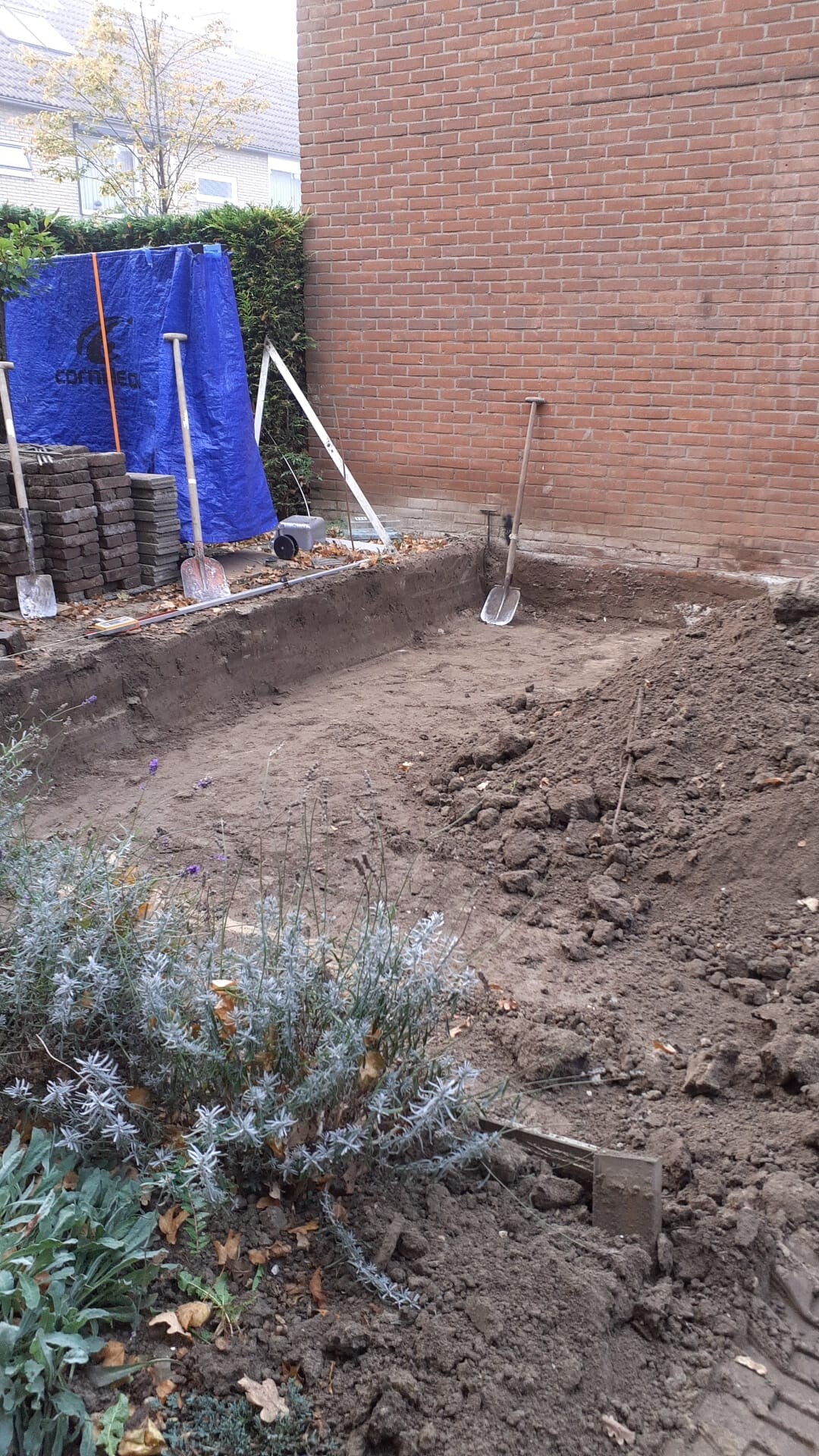 Foto-album over aanpassing in de tuin, (plaatsing) mantelzorgwoning en hulphond; Jessye