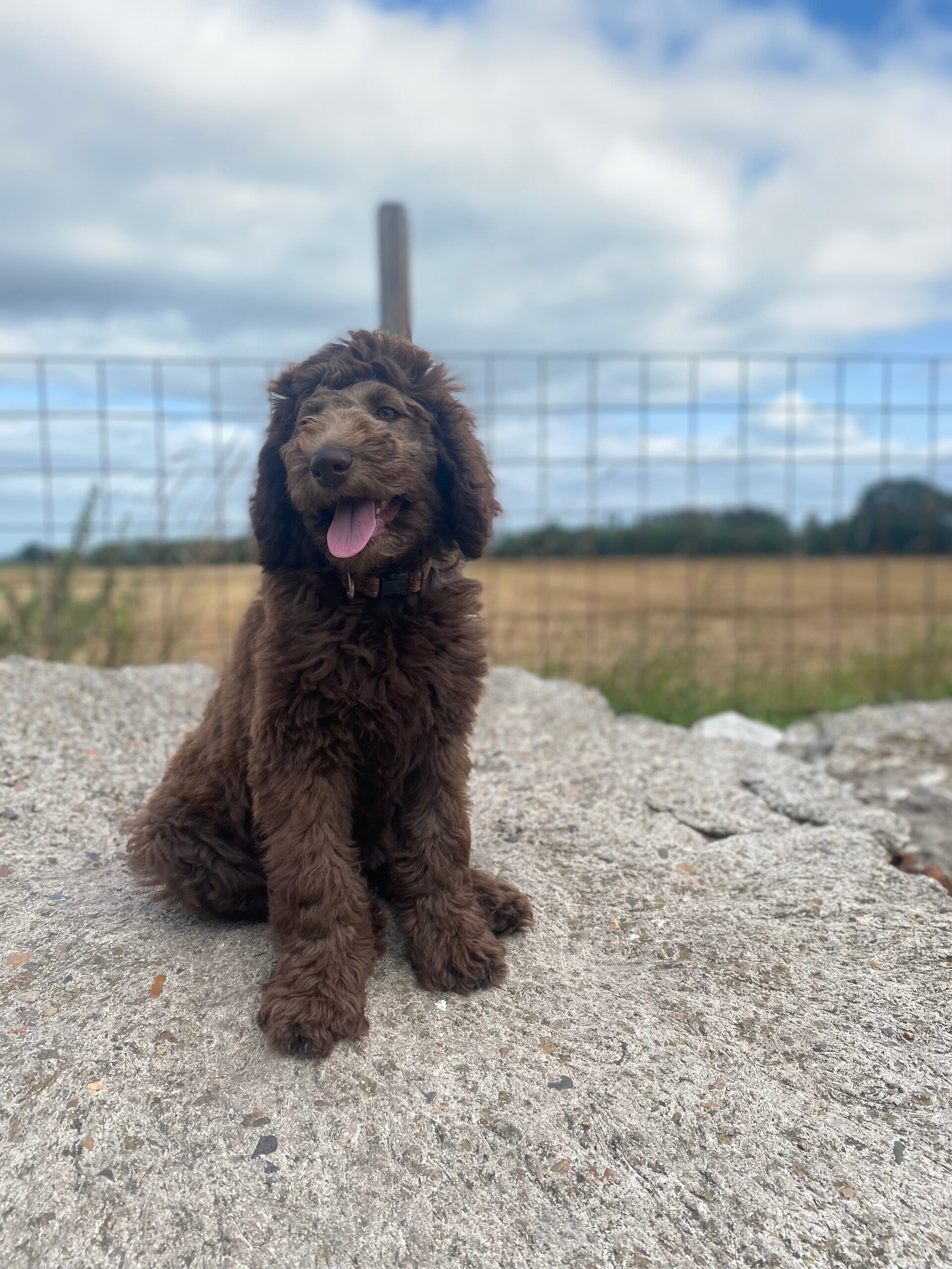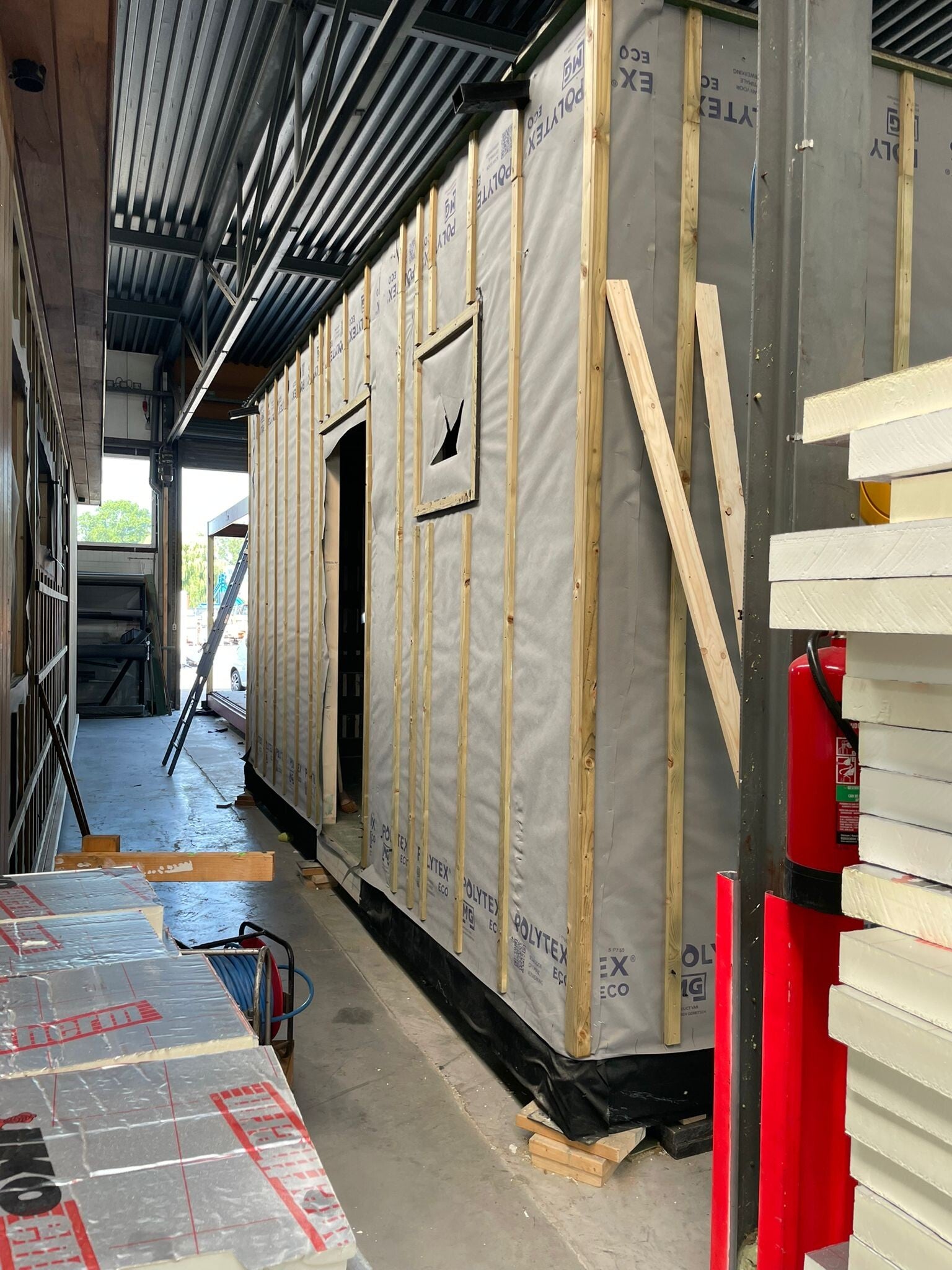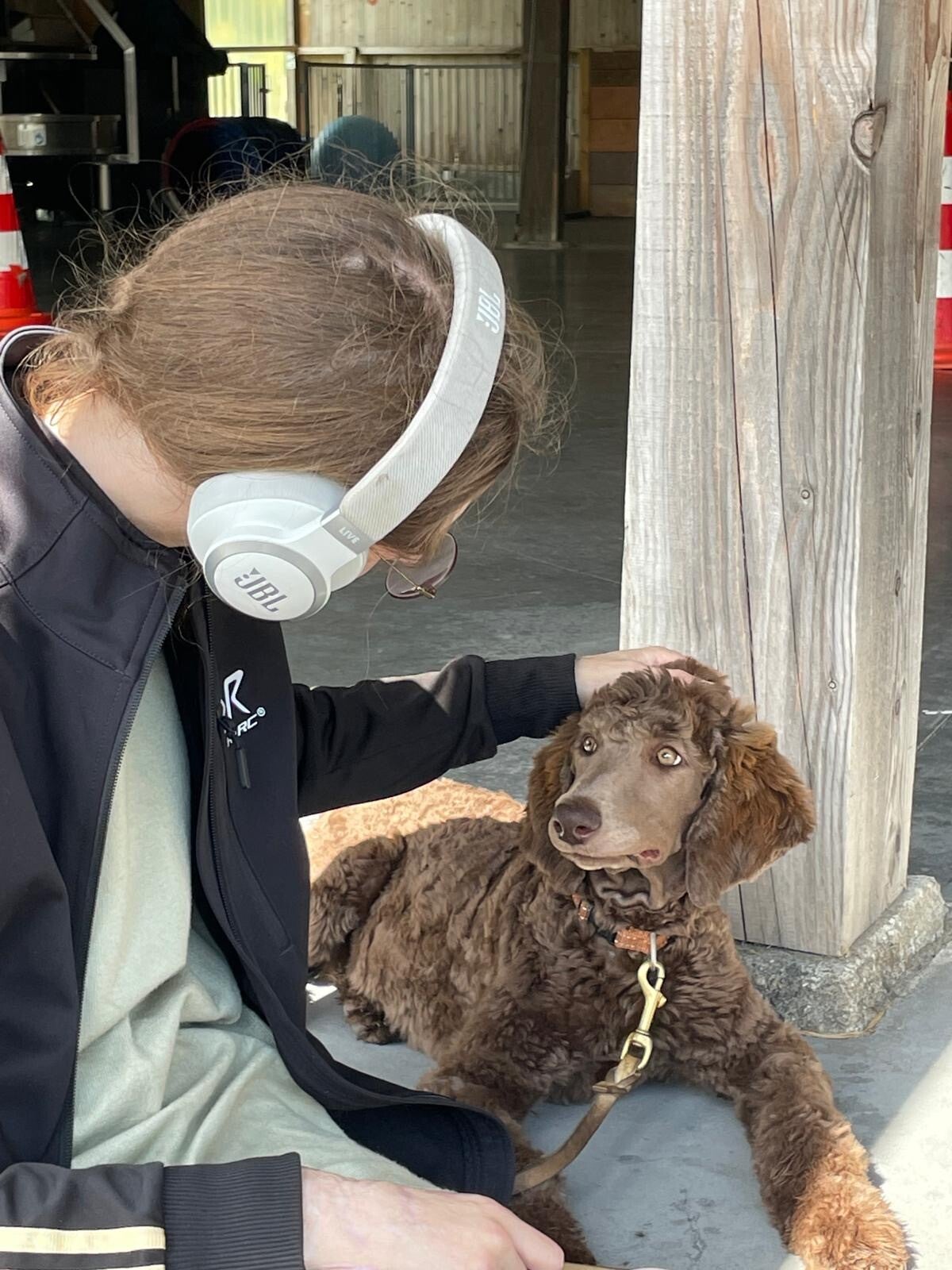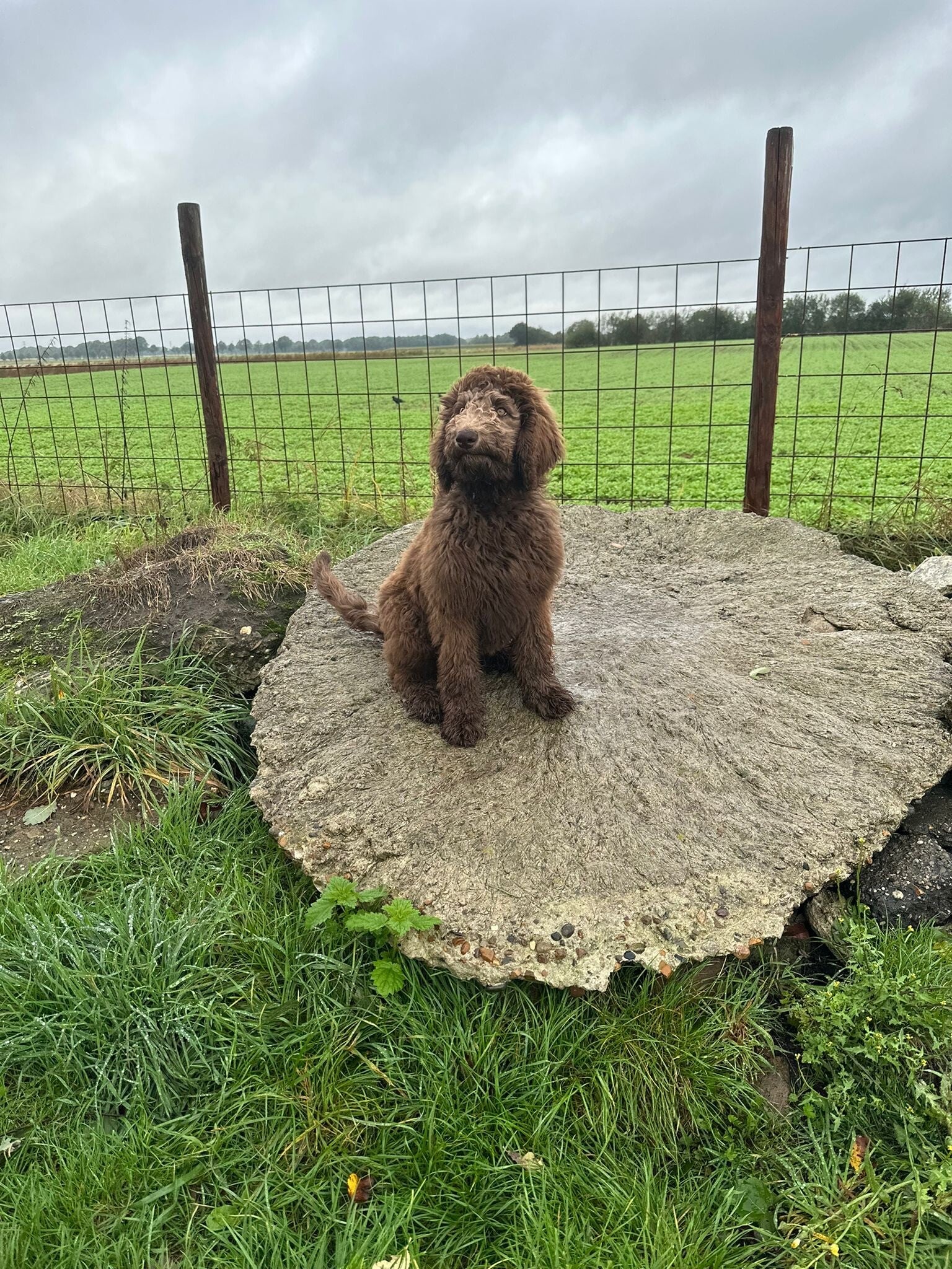 Foto-album over aanpassing in de tuin, (plaatsing) mantelzorgwoning en hulphond; Jessye